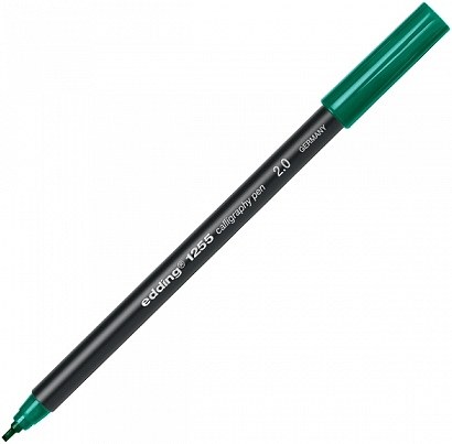 The edding 1255 is a fibrepen with a square-cut calligraphy tip ideal for lettering. Choice of tip sizes and attractive ink colours. Pigmented, permanent, very lightfast, water- based ink, smudge and waterproof on almost all surfaces in particular terracotta, wood, cardboard and canvas.