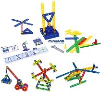 A Young engineer game, supplied with a variety of assembly elements, including a spanner, screws, nuts, pulleys, etc. This construction is of pedagogical value to relate to the concepts of assembly games with the construction of objects from the real world, easily recognisable to children. The 8 building plans that the set includes are a large size and detailed in progressive stages, helping the child?s attention and reasoning. The container also includes a pedagogical guide and an additional pamphlet with suggestions for constructions.